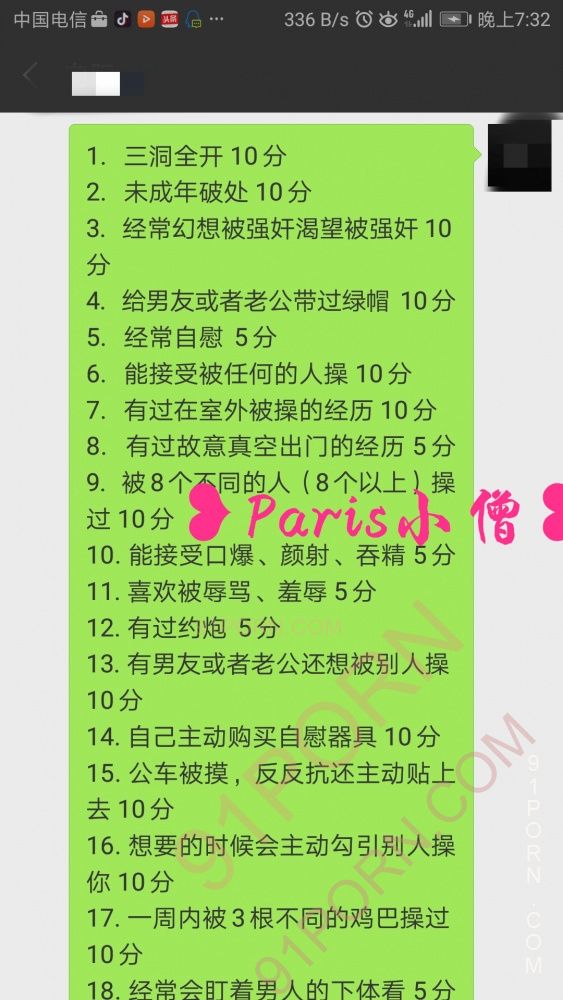 自我介绍:0576。喜欢刺激,控制,微调,轻口,偏s.声音挺温柔。网调四年多,现实有固定的,也被91大神以单男身份现实多人过。喜欢乖巧听话的骚女,放得开,玩得也舒服。自我感觉喜欢两类:一种什么都不懂的外表单纯内心有想法的“乖乖女”,一种玩的起放得开的小浪货。江浙沪附近可以加来了解下,觉得可以后期现实。