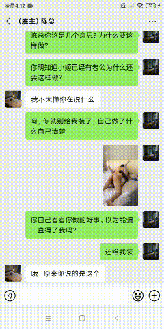 时间转眼间过了将近半年,小姬回到家几乎是没有提及过工作上的事情,最多只是说说,有女同事一起在陈总家做家务,一起接待很多的客人。她经常早出晚归,有时候甚至几天没回来。但是具体还有工作内容是什么小姬都没有透露。后来有一天,小姬的一个同事小慧联系了阿伟。