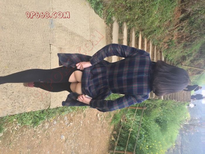 开档丝袜去爬山,故意逆流而行,不少游客抬头发现了