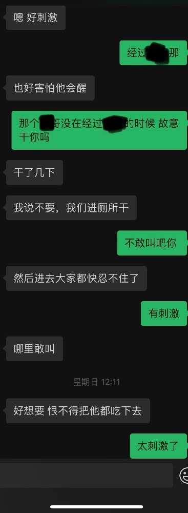 聊天里的场景真是既害怕又期待。不过就是文爱而已做不得真。大家有没有新鲜刺激的场景说一说,期待大家的点子。可以挑逗一下骚妻,骚妻可能会回复的。不喜勿喷